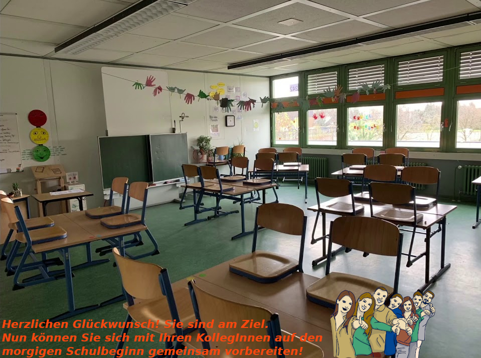 Sie haben den Schlosscode herausgefunden und sind noch rechtzeitig in die Schule gekommen bevor Ihre Mitstreiter entnervt nach Hause gefahren sind!